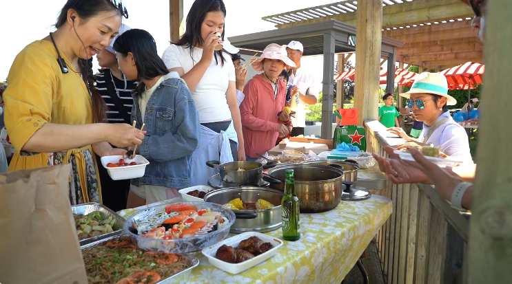 中午, Potluck 更是将活动气氛推向高潮 —— 每个家庭带来的特色美食摆满长桌,再加上林博士亲手调制的蜂蜜饮品,让美食清甜爽口,香满长廊。